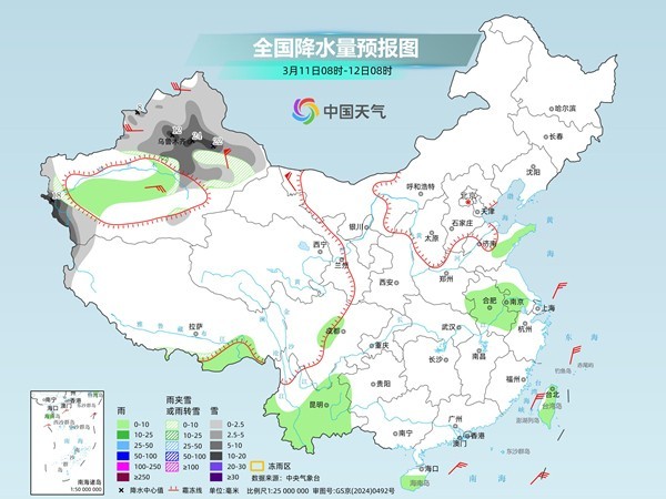 气网指引中国天,地将现彰着降雪今诰日新疆多,雨雪气象来袭后天起大边界,注气象预警预告民多需实时闭,恐怕带来的影响警戒道道湿滑,滑设施做好防,通平安戒备交。